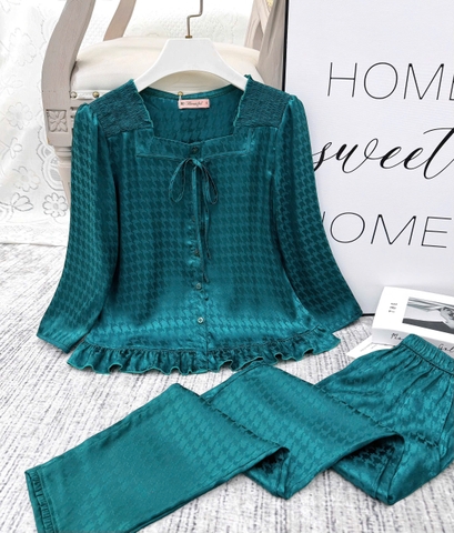 Y829C Lụa Gấm tay lỡ XANH KÉT vai chun răng sói cổ vuông